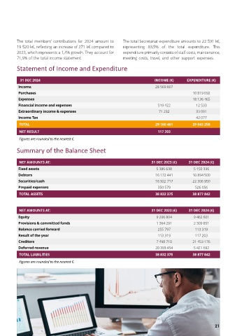 The total members’ contributions for 2024 amount to The total Secretariat expenditure amounts to 22 591 k€,